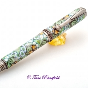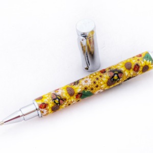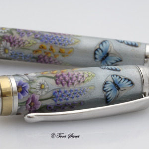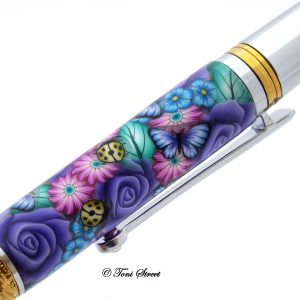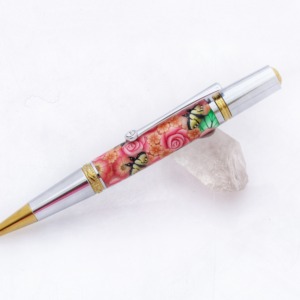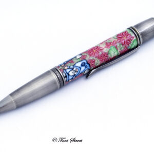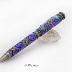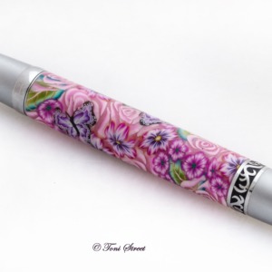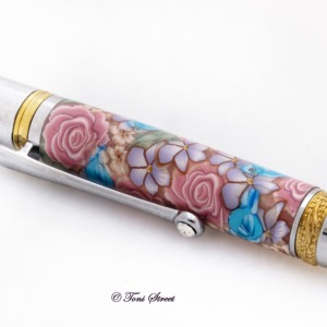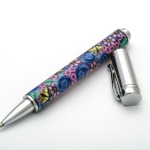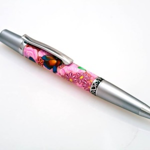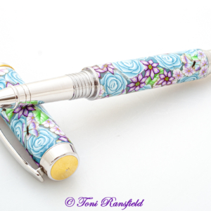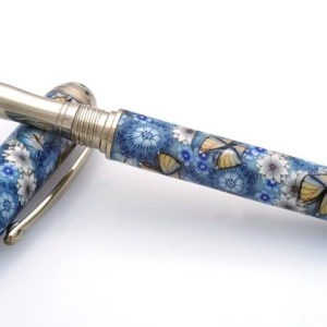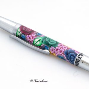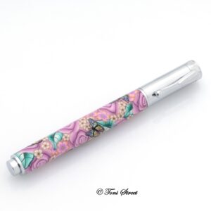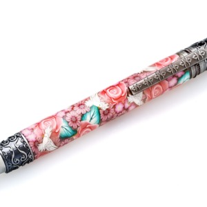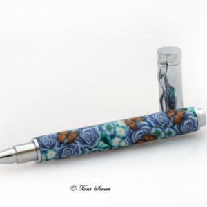Pink Roses with Blue Dragonflies Millefiori Pen