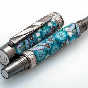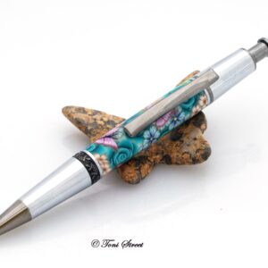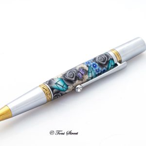 Turquoise Rose with Pink Butterflies Click Pen