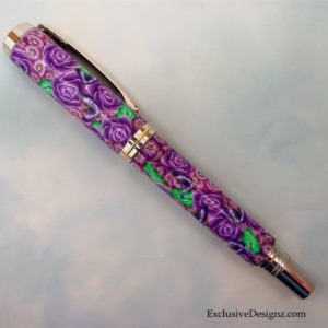 Purple Rose with Butterflies Rollerball Pen