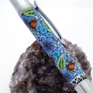 Blue Flowers with Red Lady Bugs Click Pen