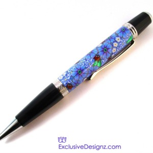 Blue Flowers with Lady Bugs Click Pen