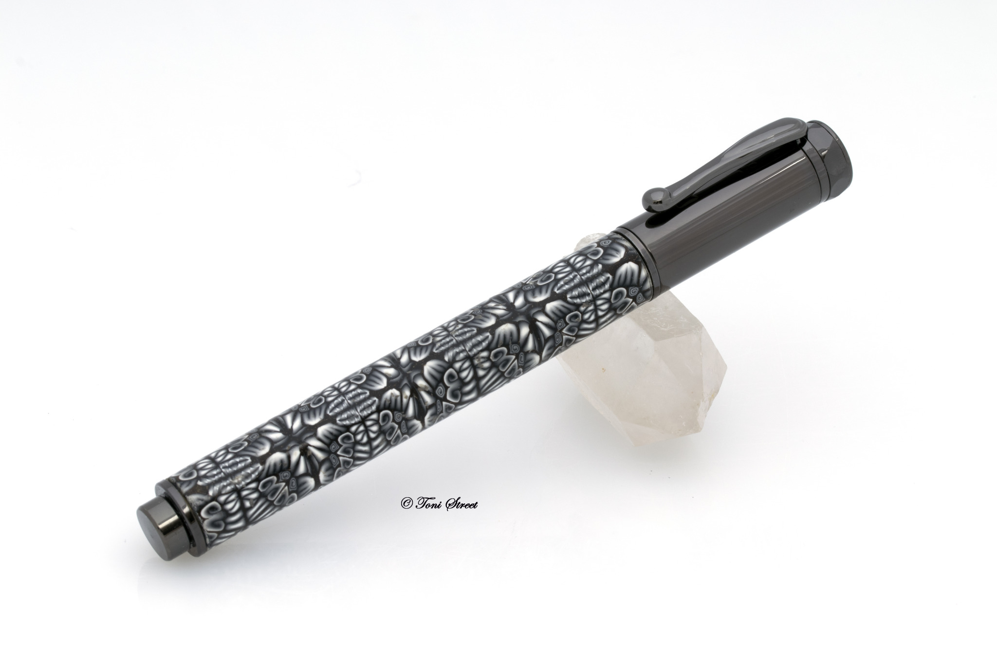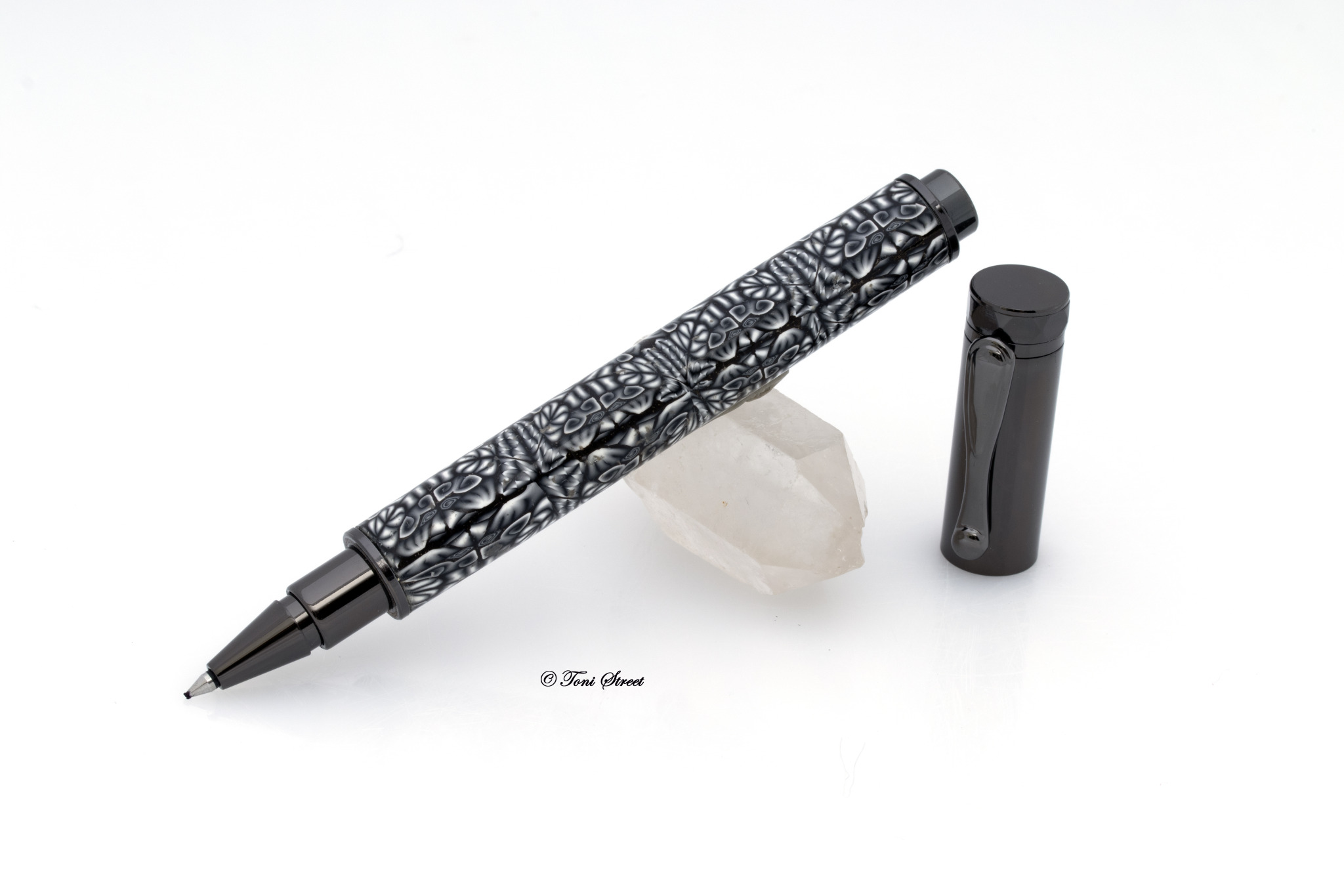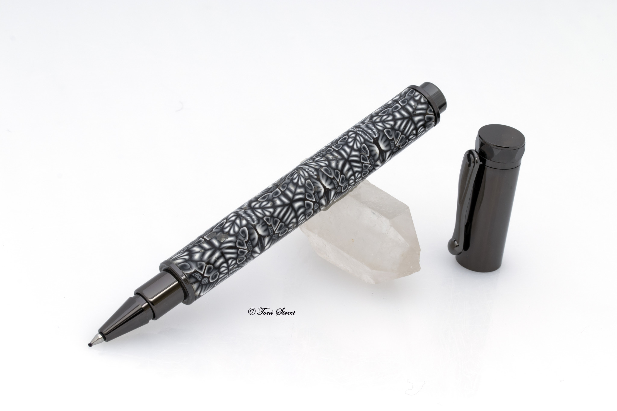 Beautiful Black Kaleidoscope design created by artist Toni Street. Well known for her Kaleidoscope cane work she has now integrated her beautiful work with pens.